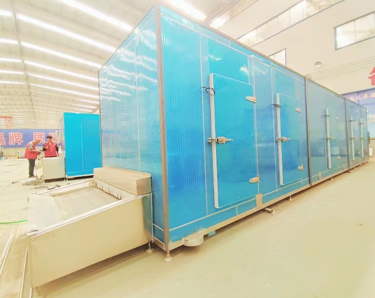 隧道式速凍機是一種用于食品速凍的設備。它由一系列冷卻和傳送帶組成。食物在傳送帶上傳送,同時被包裹在傳送帶四周的冰凍空氣冷卻。食物在這些傳送帶上旅行的時間很短,所以它可以快速冷凍食物,使食物迅速達到*的溫度,減少細菌生長的機會,同時保護食物的味道和質量。